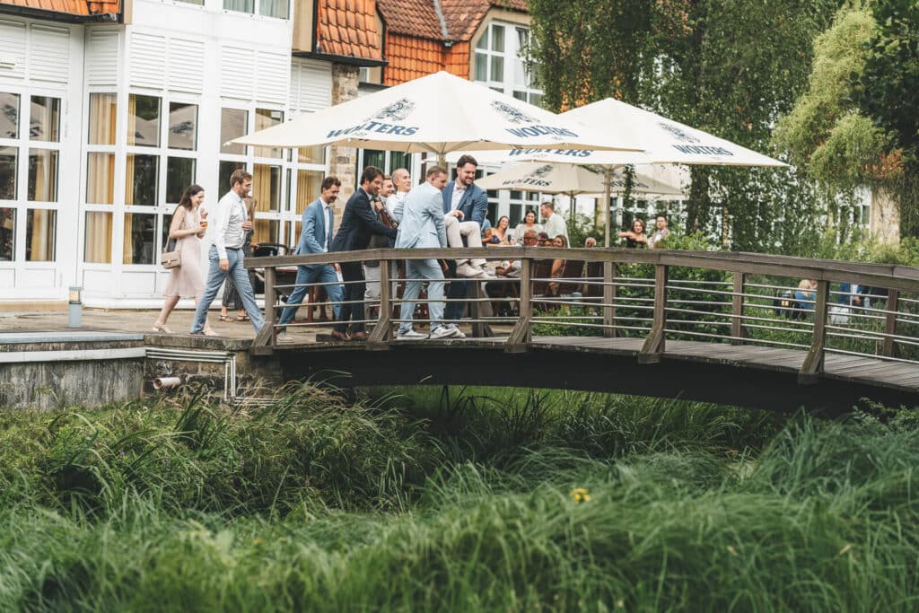 Ein großer Vorteil des MMI Hotels ist die kurze Wegeführung. Trauung, Sektempfang und Feier finden an einem Ort statt. Das sorgt für Ruhe, weil niemand ständig umziehen muss. Außerdem entspannt es eure Gäste, und ihr habt mehr Zeit, euren Tag bewusst zu erleben. Für mich als Hochzeitsfotograf Wolfsburg bedeutet das: