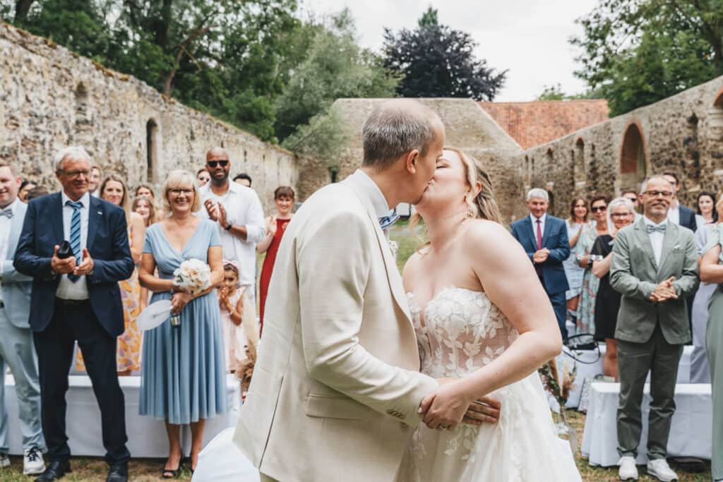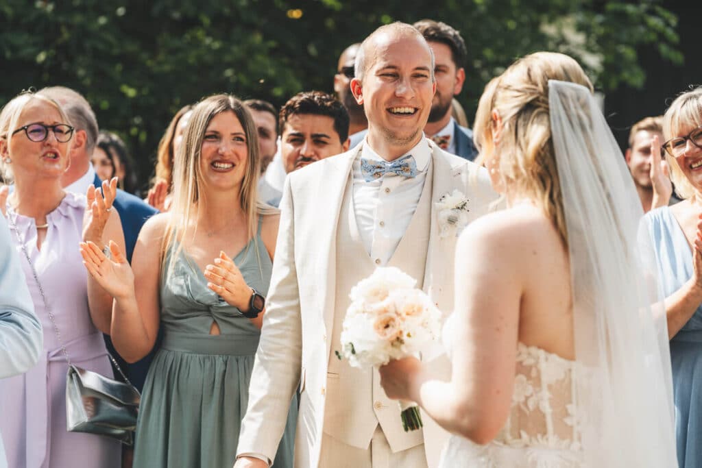 Ohne starre Vorgaben entsteht Raum für eure Geschichte, eure Musik und eure Rituale. Dadurch fühlt sich die Zeremonie nahbar an, und genau diese Nähe sieht man später auch auf den Bildern. Ein leiser Blick, ein kurzes Lächeln, Tränen in den Augen – solche Momente passieren nicht auf Kommando. Sie passieren, wenn ihr euch wohlfühlt.